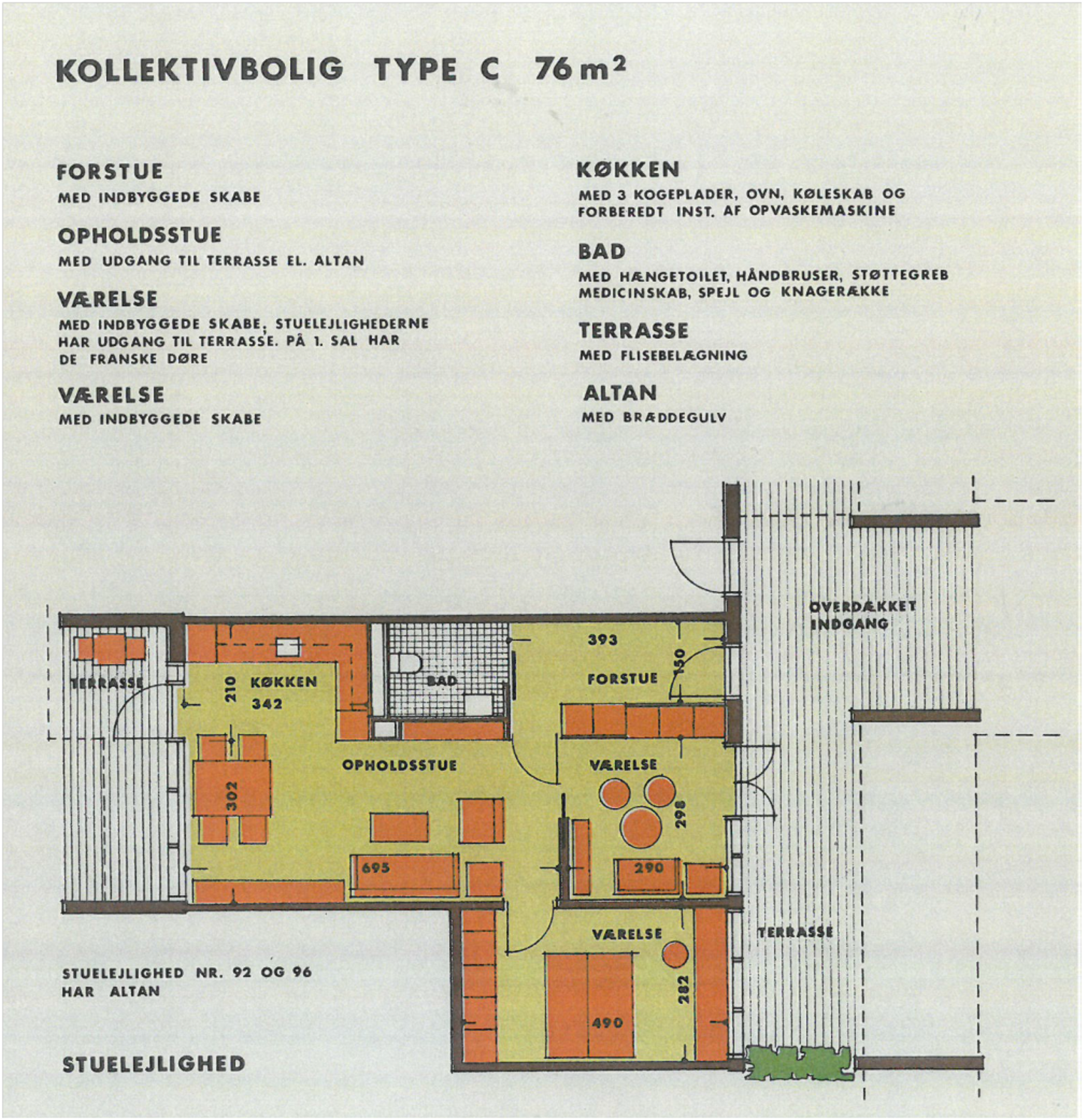 Her kan du se plantegninger af de forskellige typer kollektivboliger. Tegningerne stammer fra byggeriets start, så der tages forbehold for ændringer i forhold til det beskrevne.